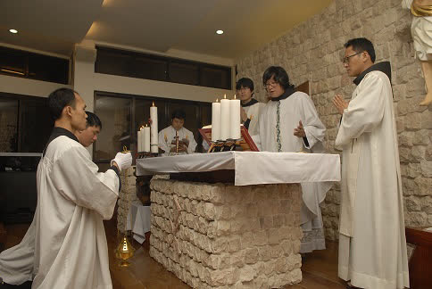 성 로렌죠 루이즈 양성소의 ‘부활 성야 미사’ 전례 모습입니다.